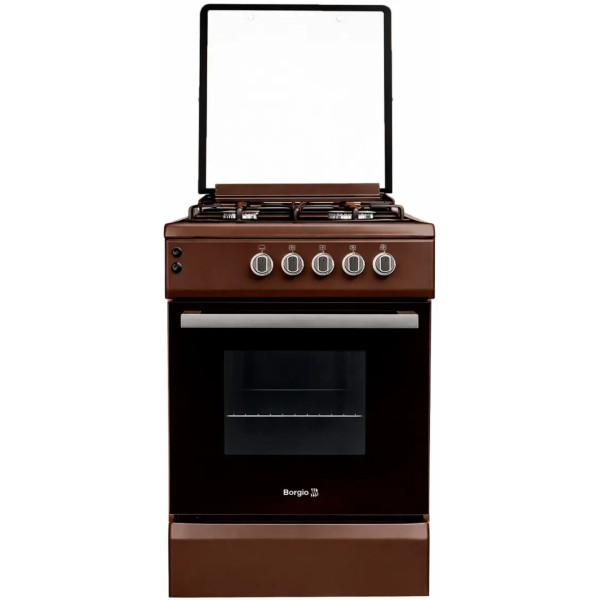 Дисплей/Ні|Напрямні/Рельєфні|Гарантійний термін/1 рік|Вага/33 кг|Комплектація/Гарантійний талон, Інструкція, Решітка, Деко, Шнур живлення з вилкою, Плита|Габарити (ВхШхГ)/85 x 50 x 60 см|Кількість конфорок / зон нагріву/4|Газ-контроль конфорок/Так|Колір виробника/Коричневий|Тип зон нагріву/Газові конфорки|Бренд/Borgio|Матеріал кришки/Скло|Тип очищення духової шафи/Традиційна|Наявність
