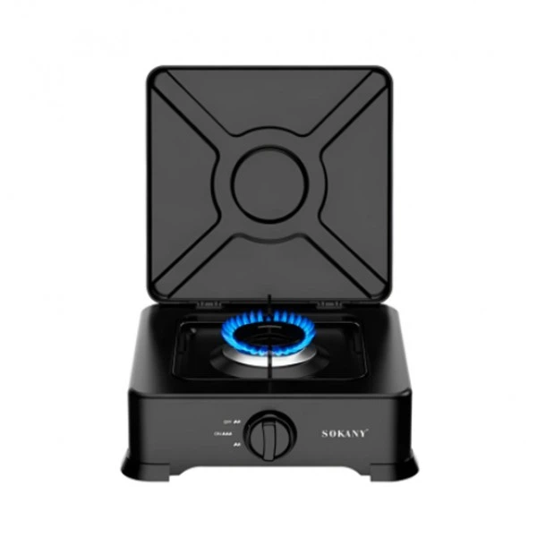 Газова плита настільна Sokany чорна 4 конфорки міні переносна для дачі кемпінгу, портативна газплита туристична