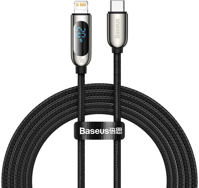 Кабель Baseus CATLSK USB3.1 Type-C M-Lightning M 20W з дисплеєм 2 м Black (CATLSK-A01)