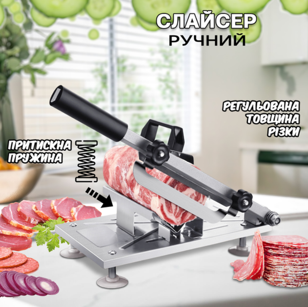 Ломтерізка слайсер ручний LY-619 для нарізки м'яса, ковбаси та сиру з нержавіючої сталі