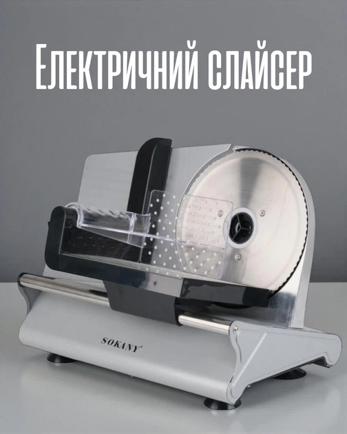Слайсер електричний професійний 150Вт ломтерізка для нарізки м’яса хліба сиру продуктів кухонний прилад SOKANY
