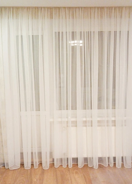 Готовий шифоновий тюль Komfort на тасьмі 100*270 см. Молочний (шифон 270м)