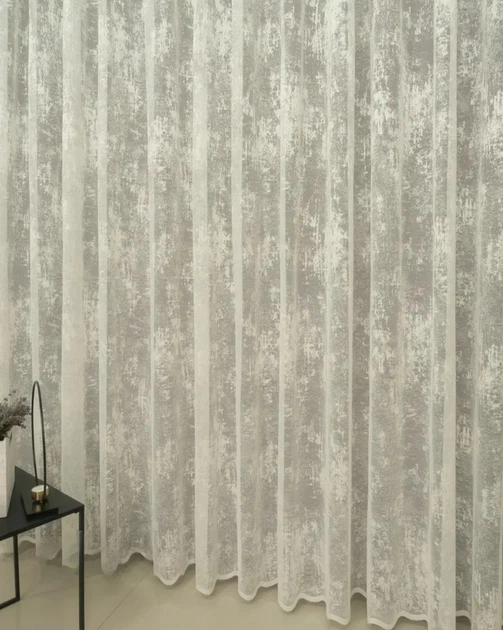 Готовий тюль жаккард Komfort мармур на тасьмі 100*270 см. Молочний (мармур 270м)