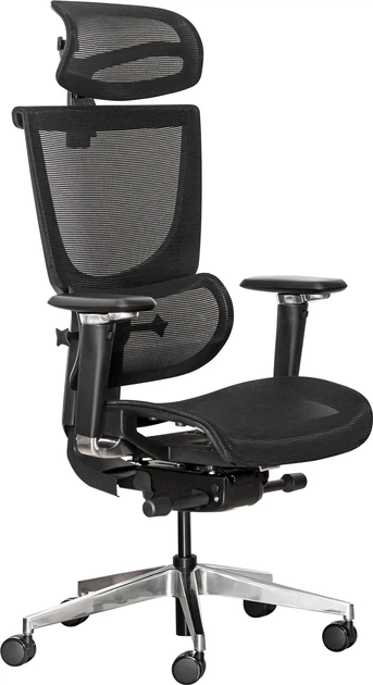Офісне крісло з підставкою для ніг Malatec, чорне, ергономічне, з регулюванням висоти та спинки