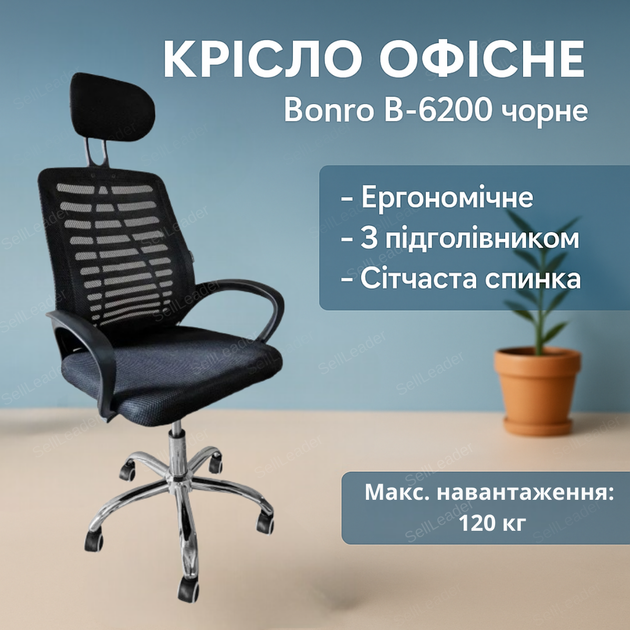 Крісло офісне Вonro з підголівником для комп'ютера кабінету дому ергономічне до 120кг регулювання висоти