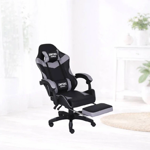 Геймерське крісло графітового кольору INFINI ESPACE Graphite Comfort з висувною підніжкою