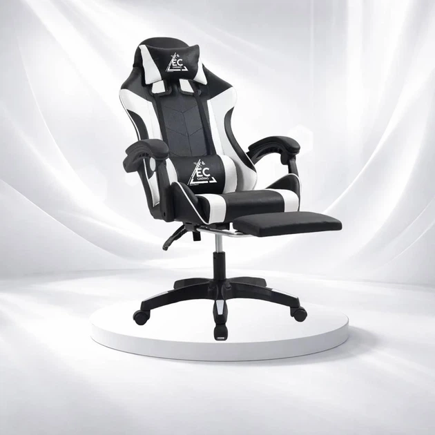 Крісло комп'ютерне компактне м'яке на колесах і золотій хрестовині Onder Metal AUGUSTO еко шкіра біла GD - Office