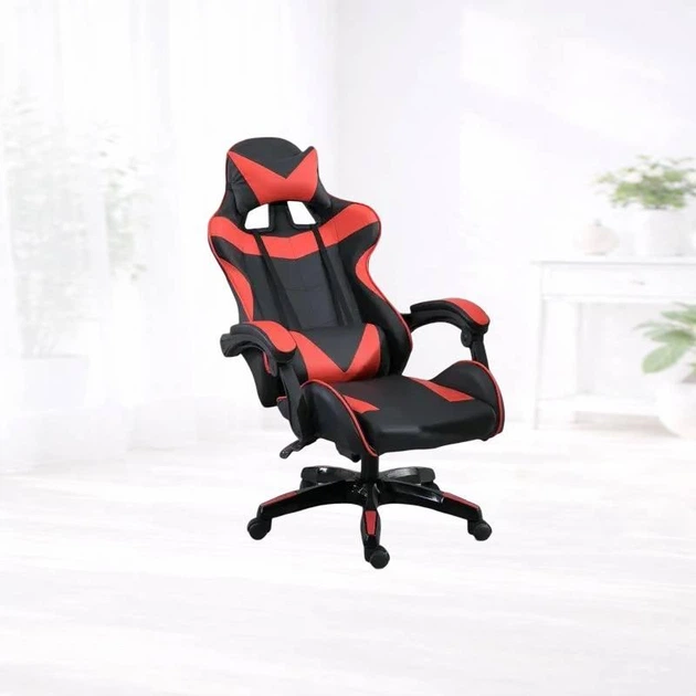 Крісло комп'ютерне компактне м'яке на колесах і золотій хрестовині Onder Metal AUGUSTO еко шкіра червона 1007 GD - Office