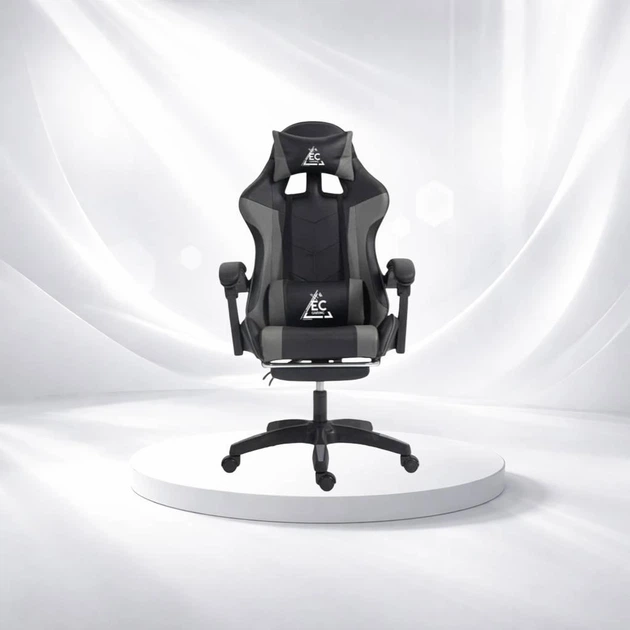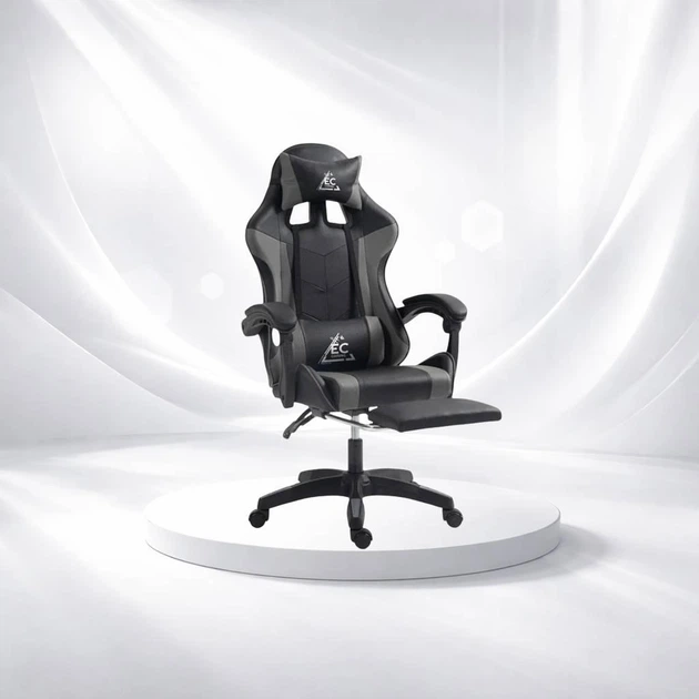 Крісло комп'ютерне компактне м'яке на колесах і хромованій хрестовині Onder Metal AUGUSTO Б-Т серый B-1004 Modern Office