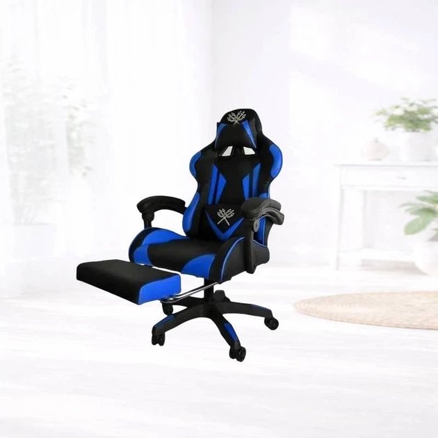 Геймерське крісло MALATEC, Чорно-синє з повністю регульованою спинкою та підставкою для ніг