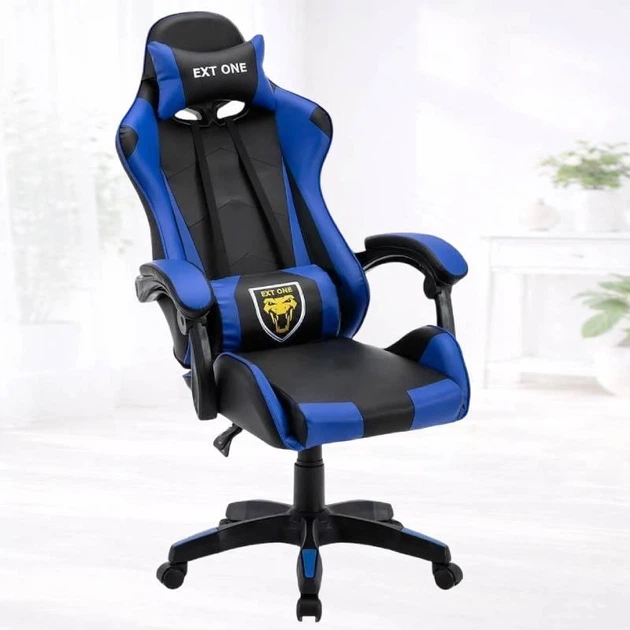 Геймерське крісло Madrex EXT ONE BLUE чорно-синє з регульованими підлокітниками та подушками