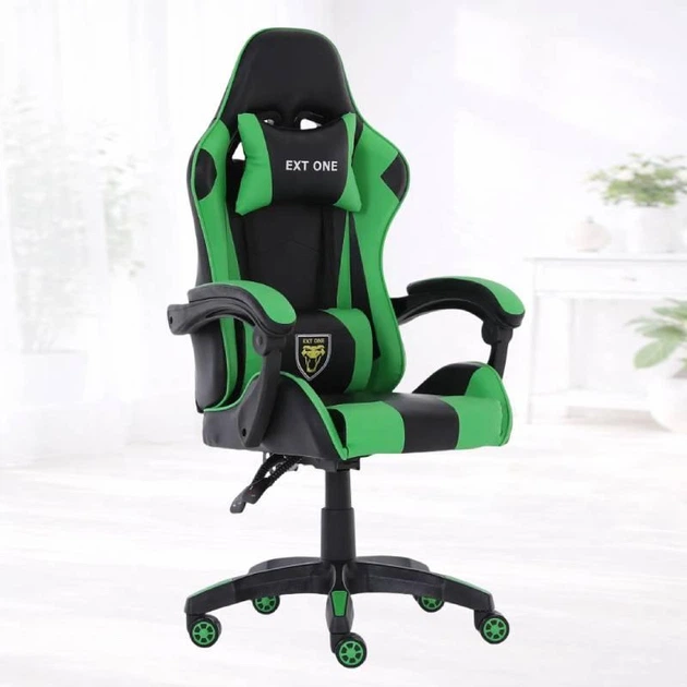Ігрове крісло Madrex EXT ONE чорно-зелене з регульованою спинкою та еко-шкірою