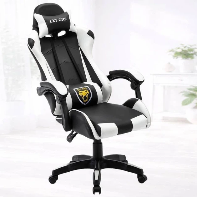 Геймерське крісло Madrex EXT ONE WHITE чорно-біле з еко-шкіри, підлокітниками та подушками