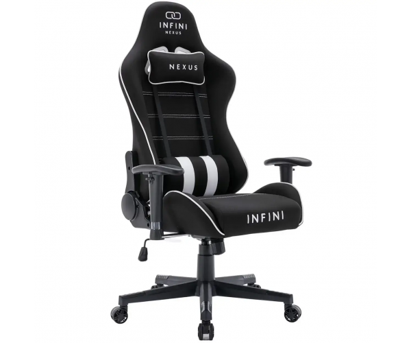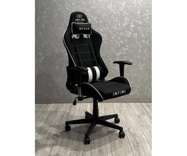 Ігрове крісло обшите тканиною для геймерів та роботи INFINI M8 чорний з білими вставками