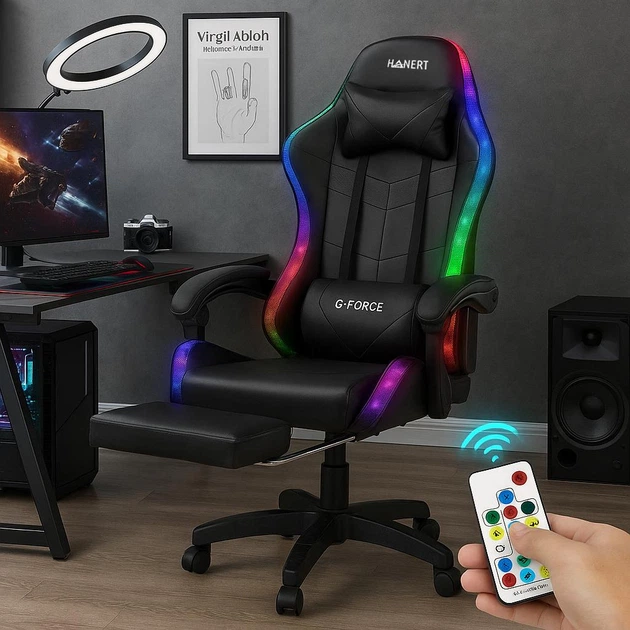Ігрове крісло професійне з RGB підсвічуванням геймерське з підставкою для ніг стілець комп'ютерний для дому офісу зручний дл