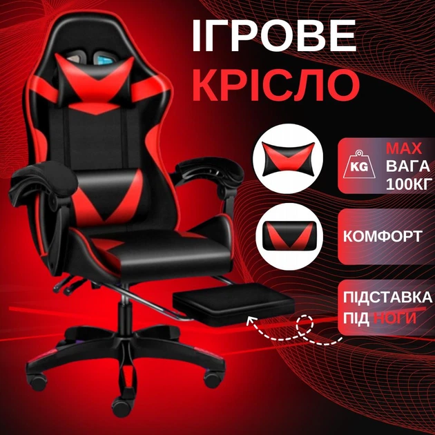 Геймерське крісло професійне Vicotan чорно-червоне до 100 кг та підставкою для ніг