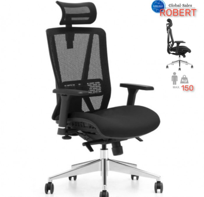 Крісло поворотне ROBERT чорна тканина/алюміній