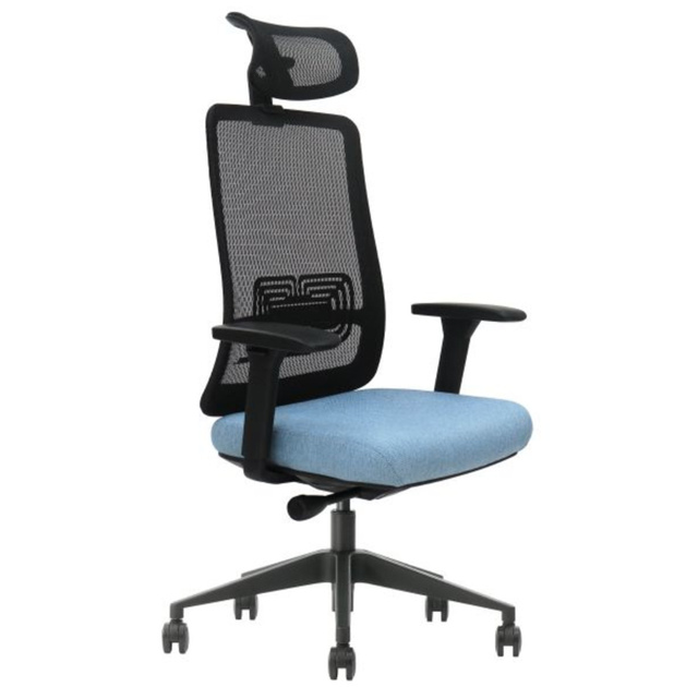 Крісло поворотне TERRY чорне/синя тканина/чорний каркас