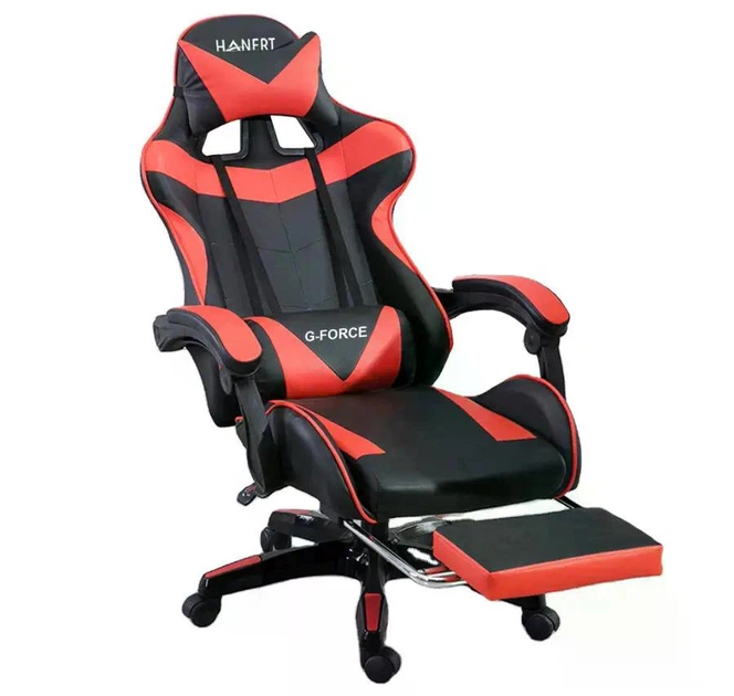 Геймерське крісло Hanert GForce Black/Red з підставкою для ніг, екошкіра