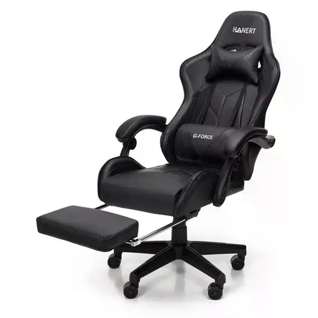 Геймерське крісло Hanert GForce Black з підставкою для ніг, екошкіра