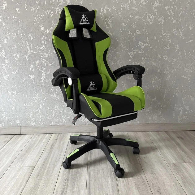 Комп'ютерне крісло GAMER KO24ZIEL Чорно-зелене, для роботи, навчання та ігор з екошкіри