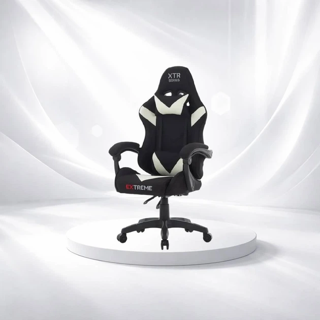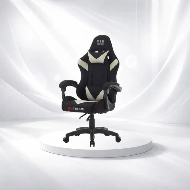 Ігрове крісло EXTREME XTR Чорно-бежеве тканинне, з регулюванням 38-48 см та поворотом 360°