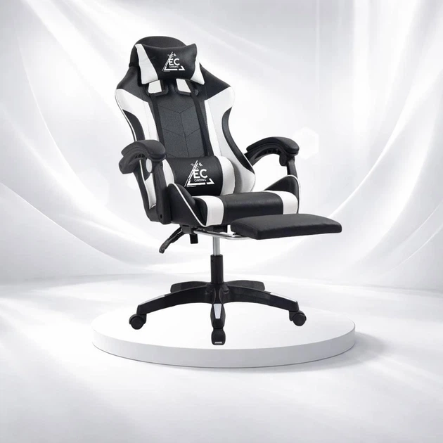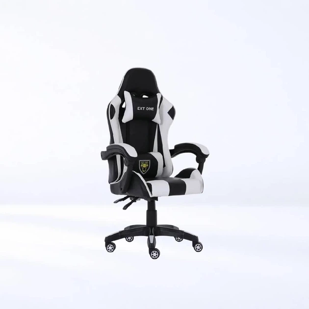 Ігрове крісло Extreme Series EXT ONE чорно-біле з двома подушками для підтримки голови та попереку