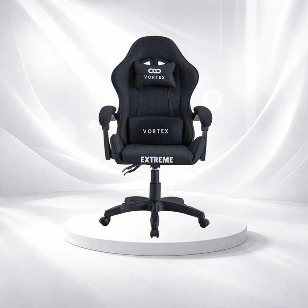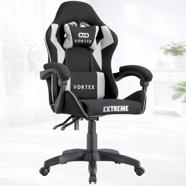 Ігрове крісло Extreme VORTEX Чорно-сіре ергономічне, тканинне з подушками