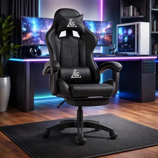 Комп'ютерне крісло GAMER KO24CZ Чорне з регулюванням нахилу, для роботи, дистанційного навчання та геймінгу