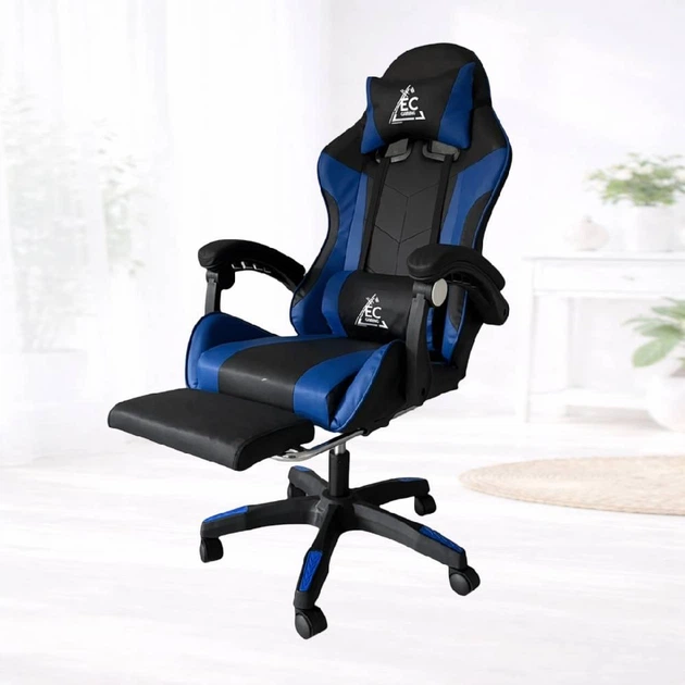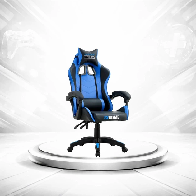 Ігрове крісло Extreme SPYDER з регулюванням спинки та подушками, чорно-синє