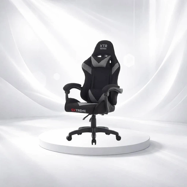 Комп'ютерне крісло EXTREME XTR Чорно-сіре тканинне, спинка 80 см, висота 125 см