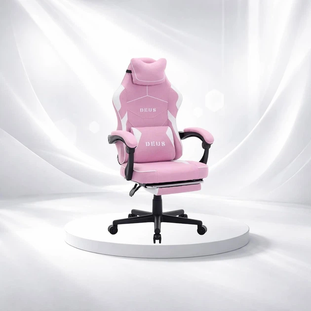Офісно-ігрове крісло Deus Edge Рожеве тканинне, висота 115-125 см, посилена хрестовина