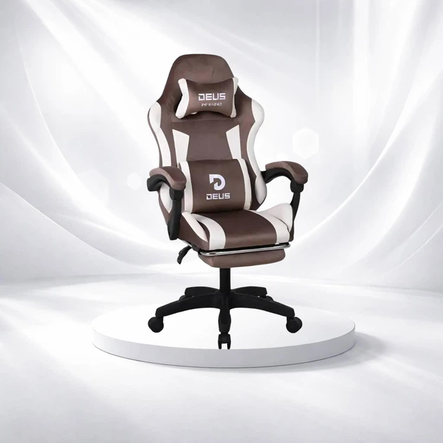 Геймерське крісло DEUS Inferno Темно-коричневе із замші, з підставкою для ніг та регульованою спинкою