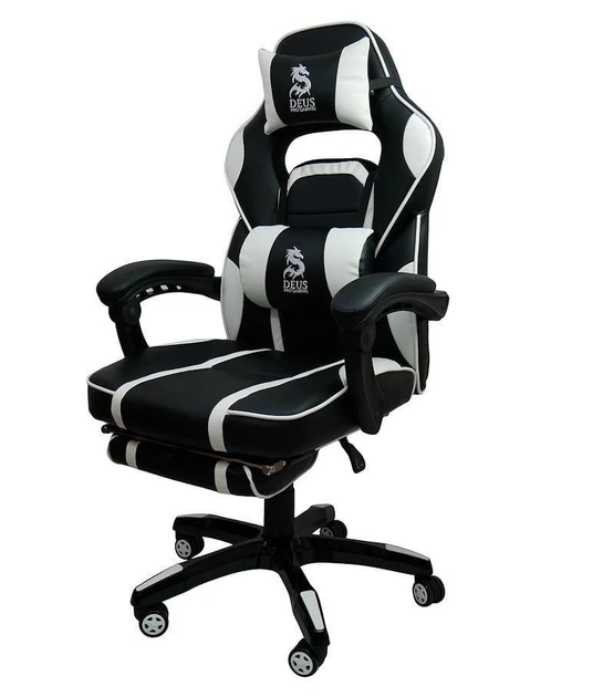 Геймерське крісло Deus Large White, чорно-біле, високоякісне спортивне крісло з подушками і сидінням, що обертається