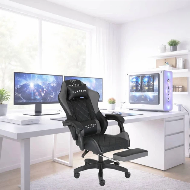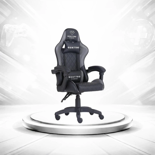 Комп'ютерне крісло в чорно-сірому кольорі CARBON Quattro Gaming, регулювання висоти та прогумовані колеса