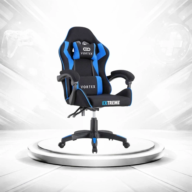 Ігрове комп'ютерне крісло VORTEX синє з тканини, з ергономічною спинкою