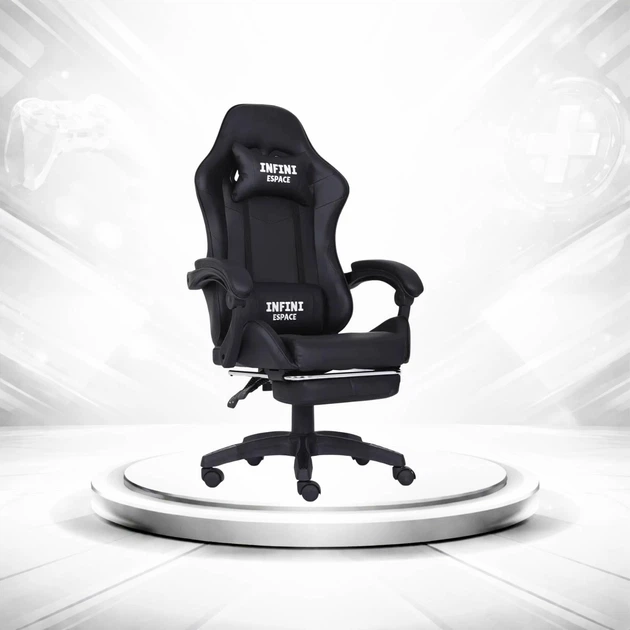 Ергономічне комп'ютерне крісло INFINI ESPACE Чорне з екошкіри, з підставкою для ніг та регулюванням спинки