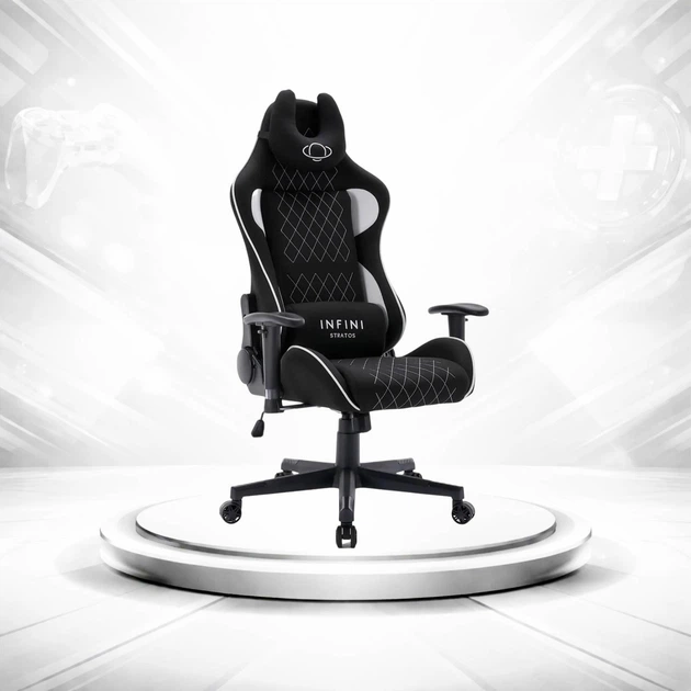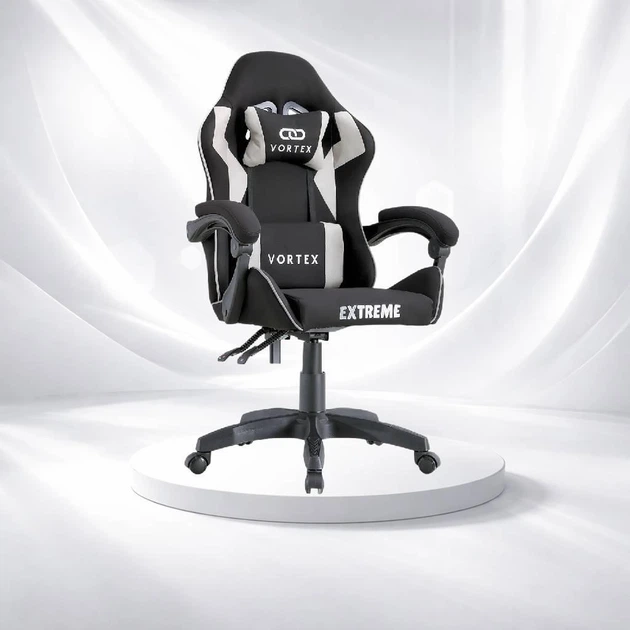 Геймерське Крісло Розкладне до 120 кг Комп'ютерне Ігрове Крісло для Геймера з Подушкою Bonro GT Біле / Чорне