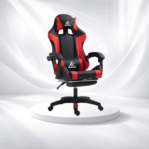 Геймерське Крісло з Підставкою для Ніг до 120 кг Комп'ютерне Ігрове Крісло для Геймера Bonro GT Червоне / Чорне