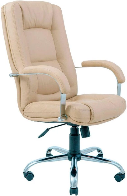 Офісне крісло керівника AlbertoDesign Хром MultiBlock М-3 Екошкіра Бежевий (Прогумовані колеса)