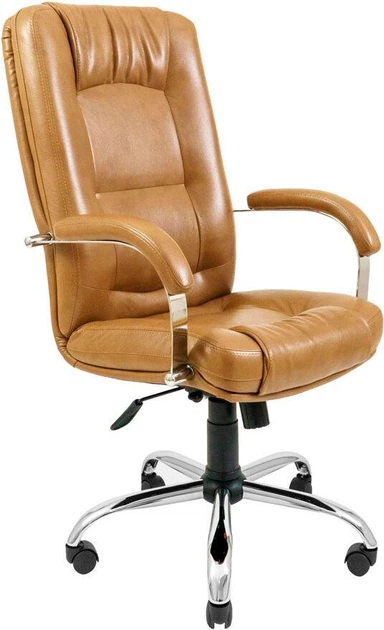 Офісне крісло керівника AlbertoDesign Хром MultiBlock М-3 Екошкіра Коричневий (Прогумовані колеса)