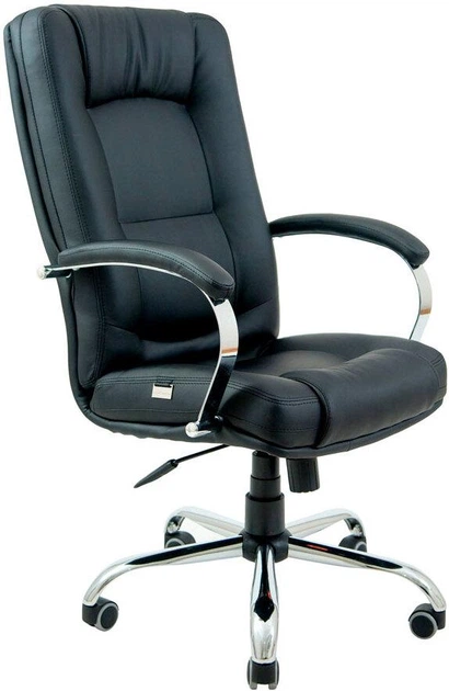 Офісне крісло керівника AlbertoDesign Хром MultiBlock М-3 Екошкіра Чорний (Прогумовані колеса)
