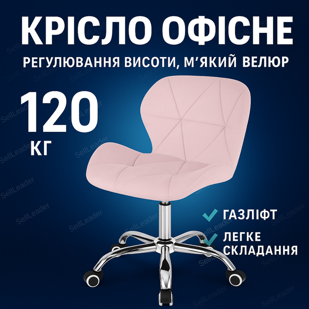 Офісне крісло велюр комп'ютерне газліфт 120 кг для персоналу дому та офісу стілець хром база універсал