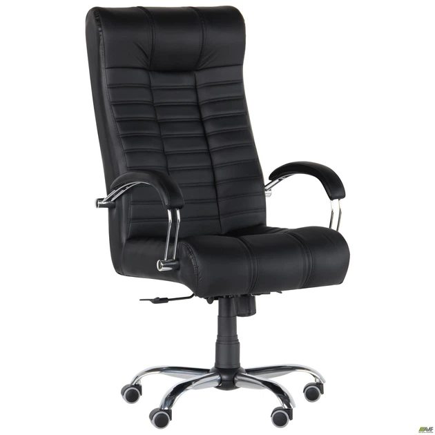 Крісло Атлант Хром п1 м-2 (Anyfix) Шкіра Люкс комбо Чорна
