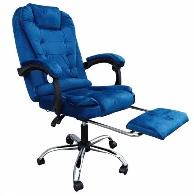 Офісне крісло велюр синій, з масажем і підніжкою, до 150 кг в дім або офіс