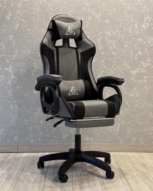 Комп'ютерне крісло із тканини з масажем у подушці + підніжка STRIKER KO40SZ СІРЕ