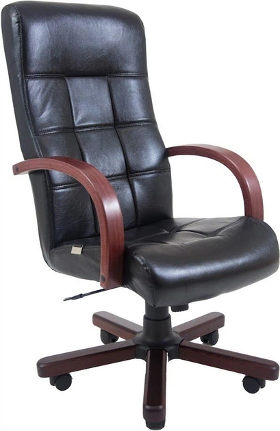 Офісне Крісло Керівника Virginia Шкіра Комбо Wood Lux М1 Tilt Чорне