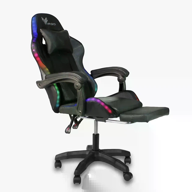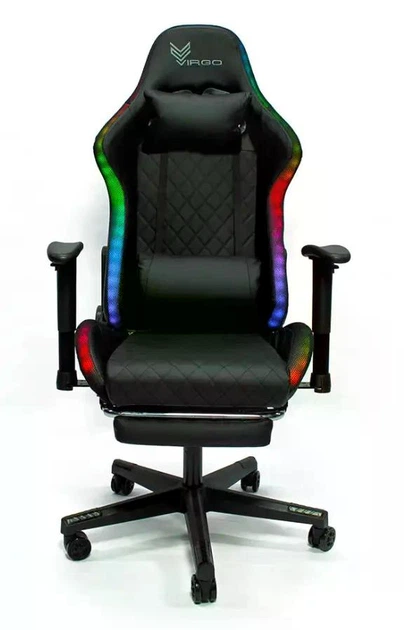Геймерське крісло Virgo Game PRO X3 LED з RGB підсвічуванням та підставкою для ніг, максимальне навантаження 150 кг