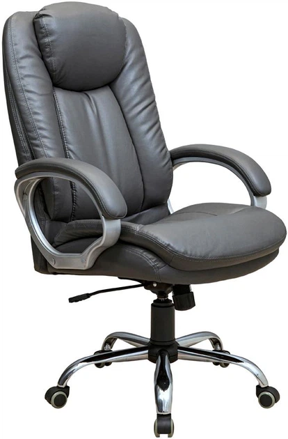 Офісне крісло керівника AlbertoDesign Хром Tilt М-1 Натуральна шкіра Lux Madras Сірий (Прогумовані колеса)