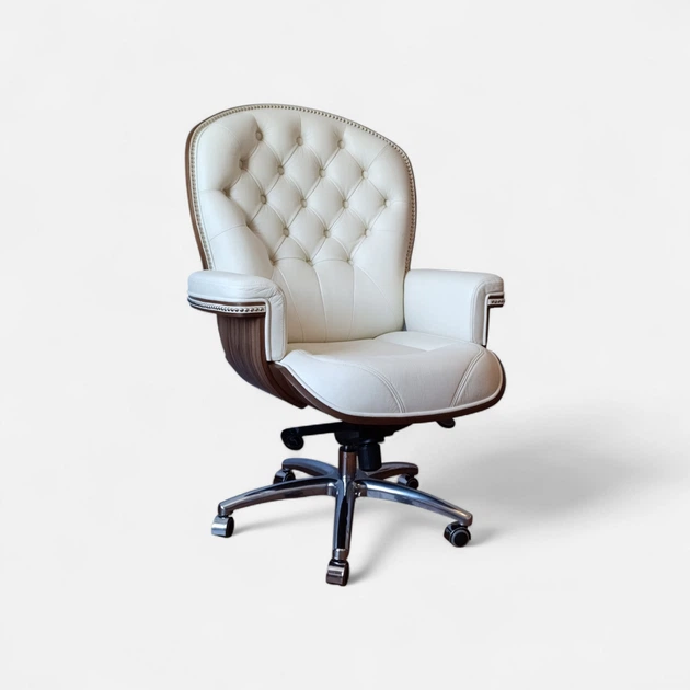 Офісне крісло керівника AlbertoDesign Хром Tilt М-1 Натуральна шкіра Lux Кремовий (Прогумовані колеса)